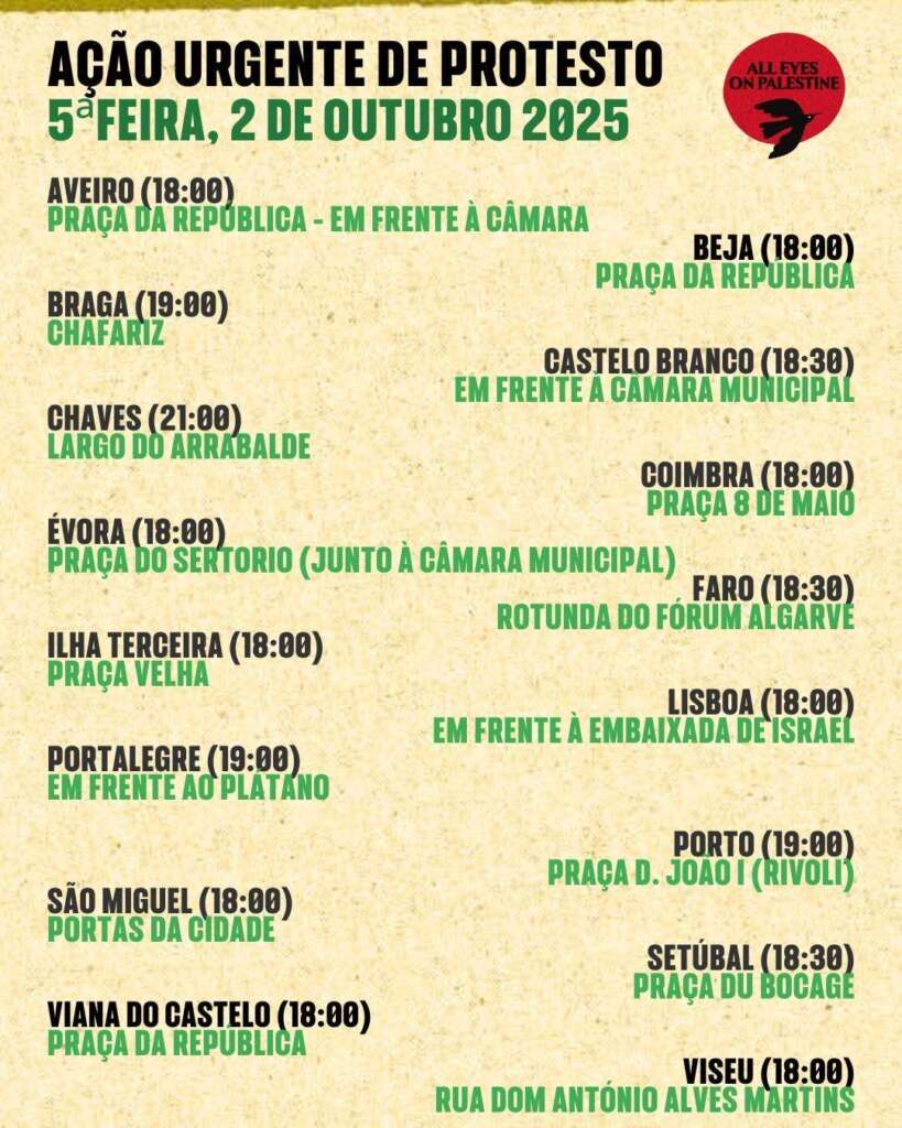 5ª-feira, 2 de outubro de 2025 – Ação de Protesto Urgente